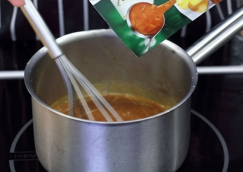W rondelku zredukuj białe wino o połowę objętości. Dodaj sok z pieczenia. Sos Knorr wymieszaj w szklance wody i wlej do sosu.