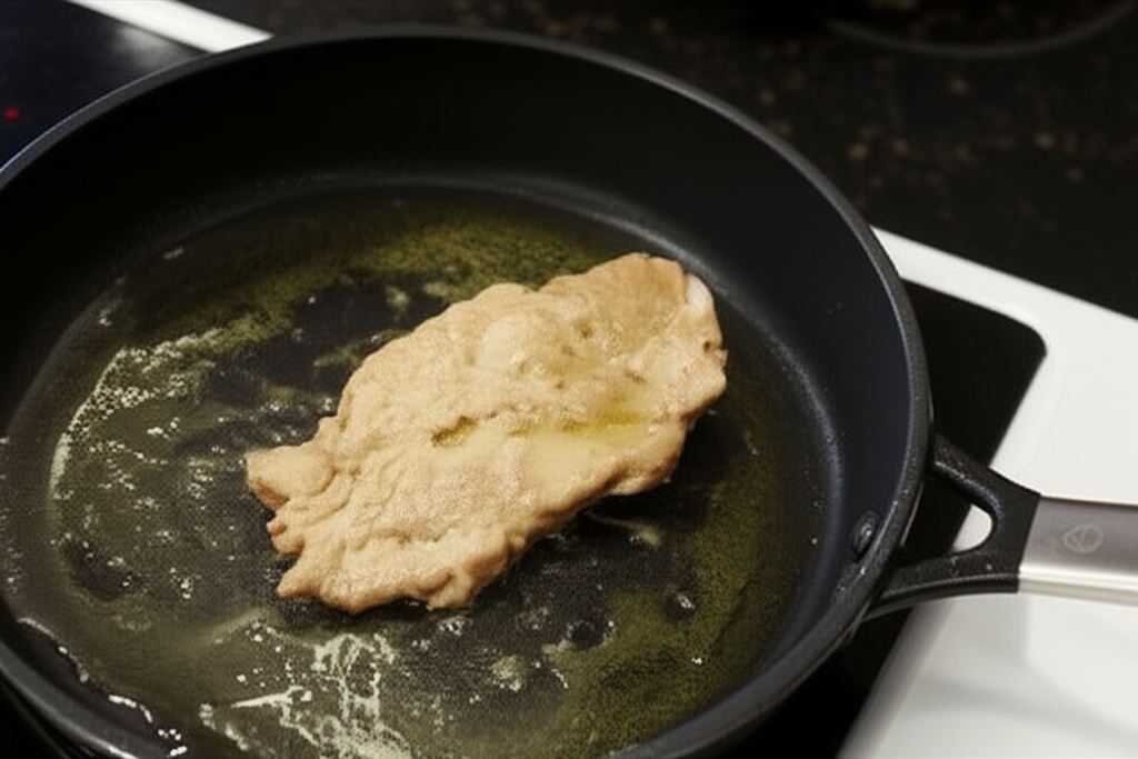 Na rozgrzanym tłuszczu obsmażaj każdy kotlecik jeden po drugim, mięso odłóż na bok, na tej samej patelni zrumień szalotkę, dodaj białe wino, odparuj do połowy objętości, wyciśnij sok z cytryny, wsyp kapary i ponownie umieść kotlety na patelni. Całość duś pod przykryciem przez około 8 minut, od czasu do czasu mieszając, aby mięso nie przywarło do patelni.