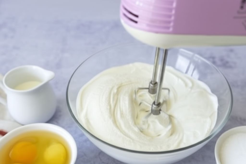 Twaróg wymieszaj mikserem z mąką ziemniaczaną. Wsyp cukier, wbij jajka i wlej śmietankę 30% – zmiksuj na krótko, jedynie do połączenia składników.