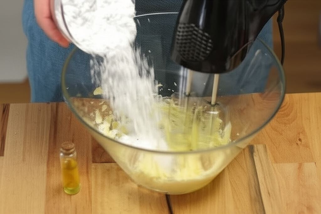 W misce utrzyj masło z cukrem pudrem, wanilinowym cukrem i ekstraktem.
