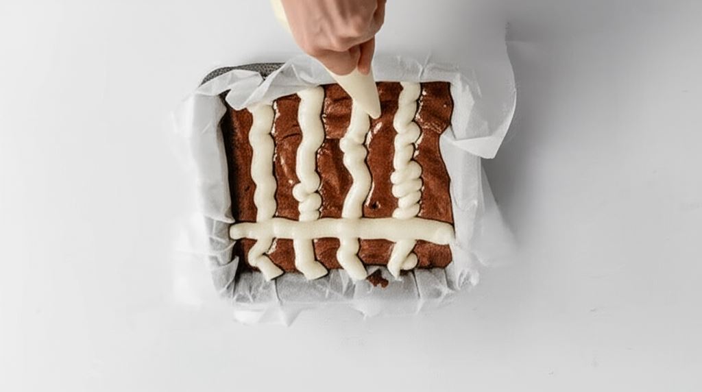 Przekładamy masę serową do rękawa cukierniczego. Na ciasto wyciskamy ją formując kratkę. Wstawiamy do piekarnika rozgrzanego do 180 C na 35 min. Posypujemy cukrem pudrem przed podaniem.