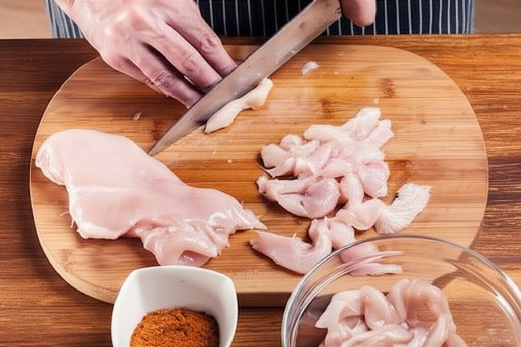 Mięso oczyść z błonek, podziel na mniejsze kawałki i potnij w paski. Potem przełóż do miski i połącz z olejem oraz przyprawą do gyrosa Knorr.
