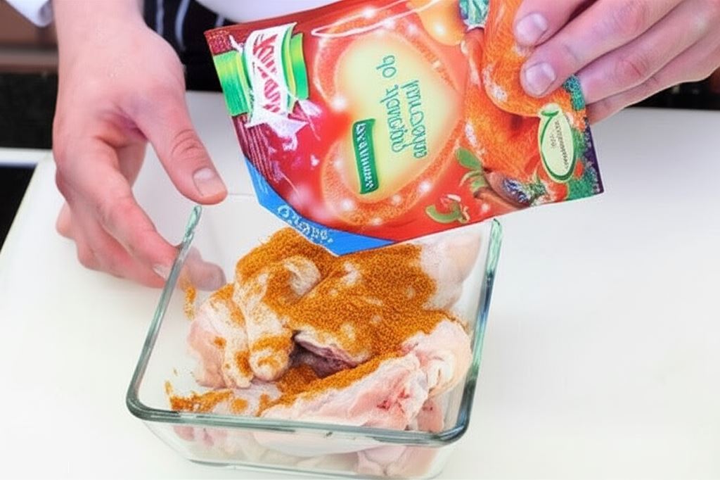Odetnij końcówki ze skrzydełek, po czym przekrój je na pół wzdłuż stawu. Obficie posyp przyprawą Knorr.