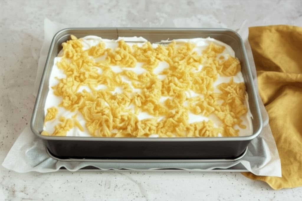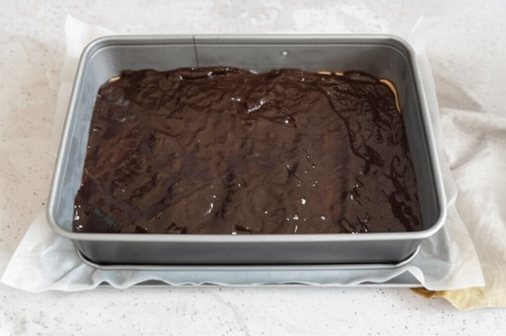 Na koniec zetrzyj na wierzch jasną część ciasta z zamrażalnika. Umieść ciasto w piekarniku, rozgrzanym do 180 stopni, na około 50 minut. Ostudź przed serwowaniem.