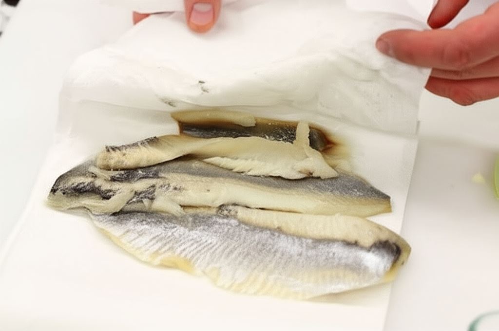 Śledzie opłucz pod bieżącą wodą, potem zalej zimną wodą z lodem i odstaw na 20 minut.