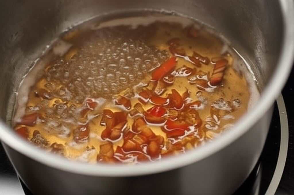 Zagotuj ocet z cukrem i posiekaną papryczką chili.