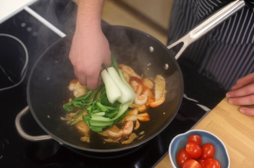 Odkryj nowe oblicze kapusty! Nasza orientalna propozycja przeniesie Cię wprost do słonecznej Tajlandii. Smażona kapusta bok choy w połączeniu z prażonym kokosem i soczystymi krewetkami tworzy harmonijną kompozycję smaków, która zachwyci nawet najbardziej wymagających smakoszy.