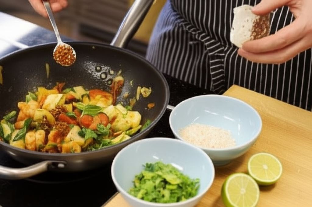 Smażona kapusta z kokosem i krewetkami w tajskim stylu