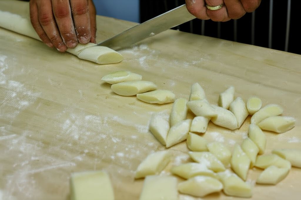 Uformuj w rękach wałeczki z ciasta (jeśli trzeba podsyp je dodatkową mąką), pokrój na kopytka.