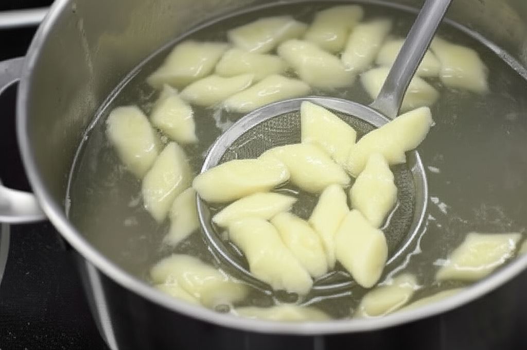 Kopytka gotuj w delikatnie posolonej wodzie około 2 minut.