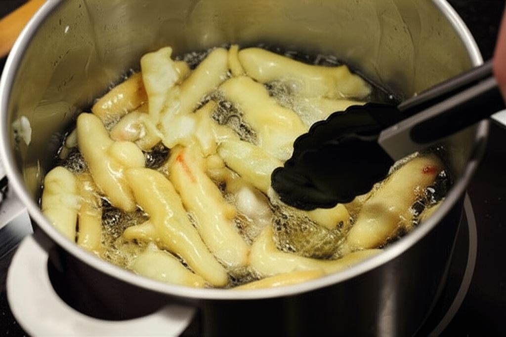W szerokim rondlu rozgrzej olej roślinny o wysokim punkcie dymienia. Kiedy tłuszcz osiągnie odpowiednią temperaturę, rozpocznij smażenie warzyw – każdą porcję zanurz w cieście i delikatnie umieszczaj w gorącym oleju. Gdy warzywa uzyskają złocisty kolor, wyjmuj je na papierowy ręcznik, aby pozbyć się zbędnego tłuszczu.