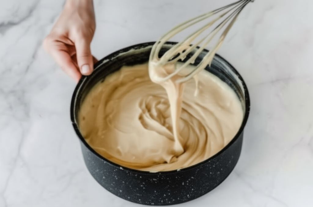 Resztę mleka doprowadzamy do wrzenia. Następnie dodajemy do niego mieszaninę z żółtkami i dokładnie mieszamy, aż masa stanie się gęsta. Odstawiamy z ognia, przelewamy do czystego pojemnika i przykrywamy folią aluminiową. Odczekujemy do ostygnięcia.
