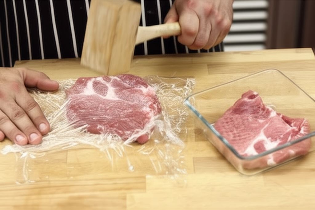 Podziel mięso na 4 kotlety i delikatnie je roztłucz.