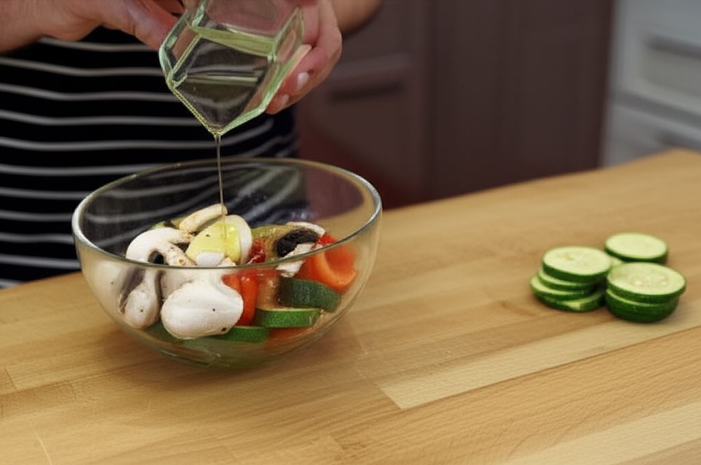 Resztę przyprawy Knorr wsyp razem z niewielką ilością oliwy i soku z cytryny do warzyw i odstaw na 1 godzinę.