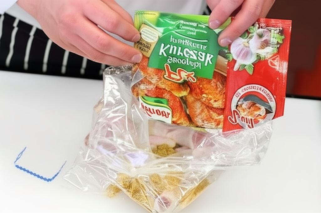 Kawałki kurczaka połącz z Fixem Knorr i olejem, a następnie odłóż na parę minut do chłodziarki.