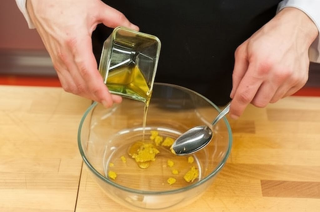 Wymieszaj kostkę rosołową Knorr z 3 łyżkami oleju. Powstałą marynatą posmaruj podwójną pierś z kurczaka. Piersi smaż na patelni około 15 minut, od czasu do czasu je przewracając.