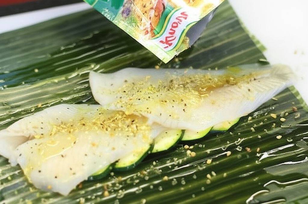 Skrop wszystko resztą oliwy i posyp pozostałą przyprawą Knorr. Zawiń dokładnie w liście bananowca. Grilluj przez 10 minut z każdej strony.
