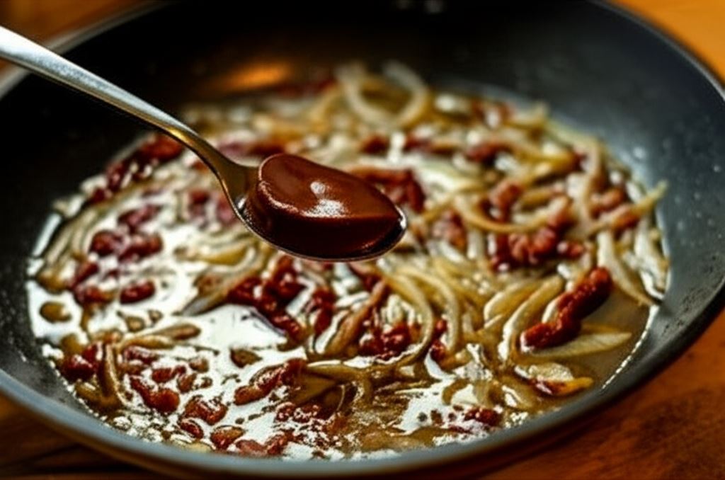 Sos cebulowy z suszonymi pomidorami to prawdziwa uczta dla podniebienia. Przygotowanie tego sosu to prawdziwa sztuka wykorzystania aromatów pozostałych po smażeniu mięsa. Na rozgrzanym tłuszczu delikatnie podsmażamy soczyste plastry cebuli, które nabierają złocistego koloru i karmelizują się, uwalniając swój słodkawy aromat. Następnie dodajemy plastry suszonych pomidorów, które wnoszą intensywny, lekko kwaskowy smak. Całość zalewamy zimną wodą i doprawiamy Sosem do pieczeni jasnym Knorr, który nadaje odpowiednią konsystencję i głębię smaku.