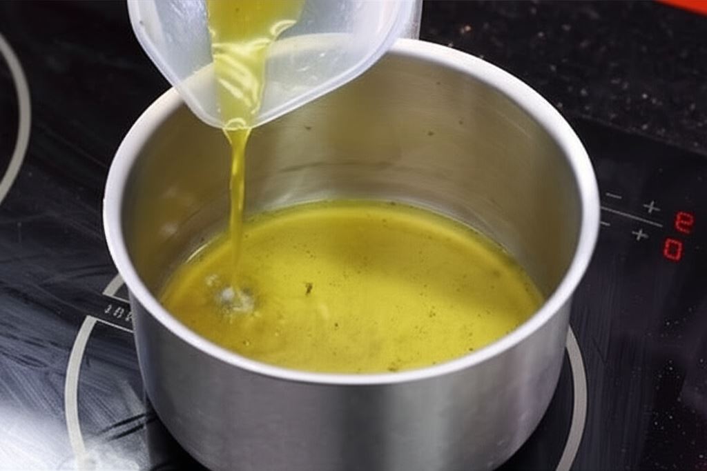 Roztop kostkę Rosołu z kury Knorr w 0,5 litra wody.