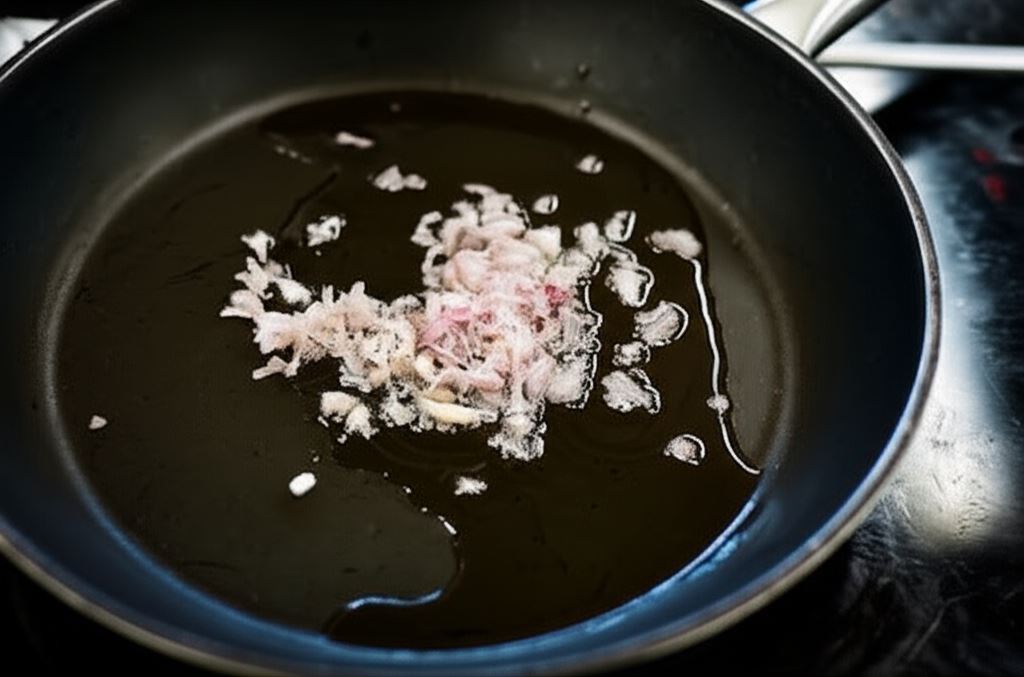 Na rozgrzanym tłuszczu, w garnku lub na patelni, gdzie wcześniej przygotowywano mięso, zrumień posiekaną na drobną kostkę szalotkę.