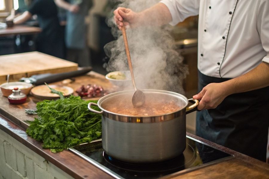 Kolejność dodawania składników ma znaczenie – kiszoną kapustę najlepiej dodawać po zagotowaniu bulionu bazowego i warzyw korzeniowych, ale przed dodatkiem buraków, aby zachować jej wyrazisty smak.