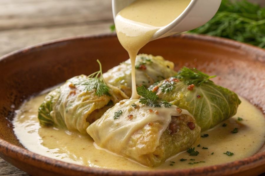 Tradycyjny sos śmietanowo-maślany powinien delikatnie oblewać gołąbki, nie dominując ich, lecz podkreślając charakter dania – to znak rozpoznawczy polskiej kuchni, gdzie harmonia smaków jest kluczowa.