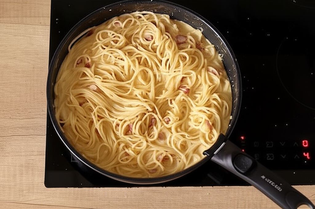Kluczem do idealnej carbonary jest technika łączenia składników. Dodając masę jajeczną do gorącego makaronu, należy energicznie mieszać, aby uzyskać kremową konsystencję zamiast jajecznicy. Dlatego tak ważne jest, by ogień pod patelnią był minimalny.