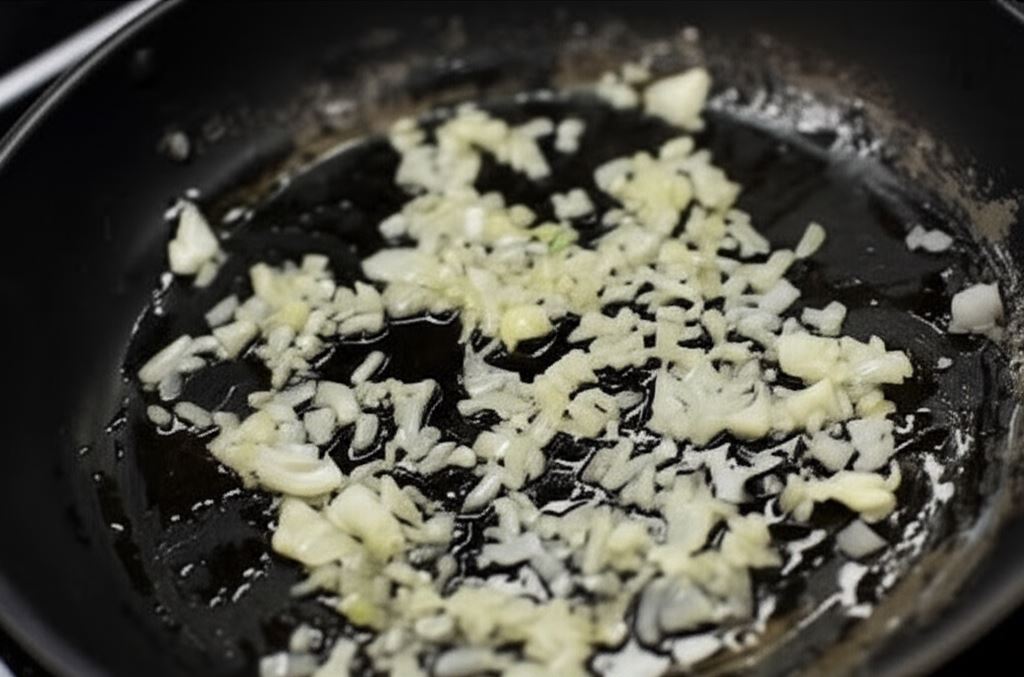 Obierz cebulę i czosnek, posiekaj je na drobne kawałki. Zesmaż na rozgrzanym oleju na patelni.