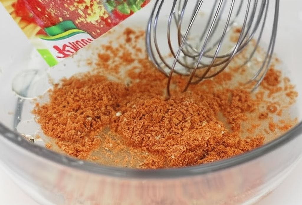 Pomidory posiekaj w małą kostkę. Z 400 mililitrami wody zmieszaj Fix Knorr. Przypraw sosem Tabasco.