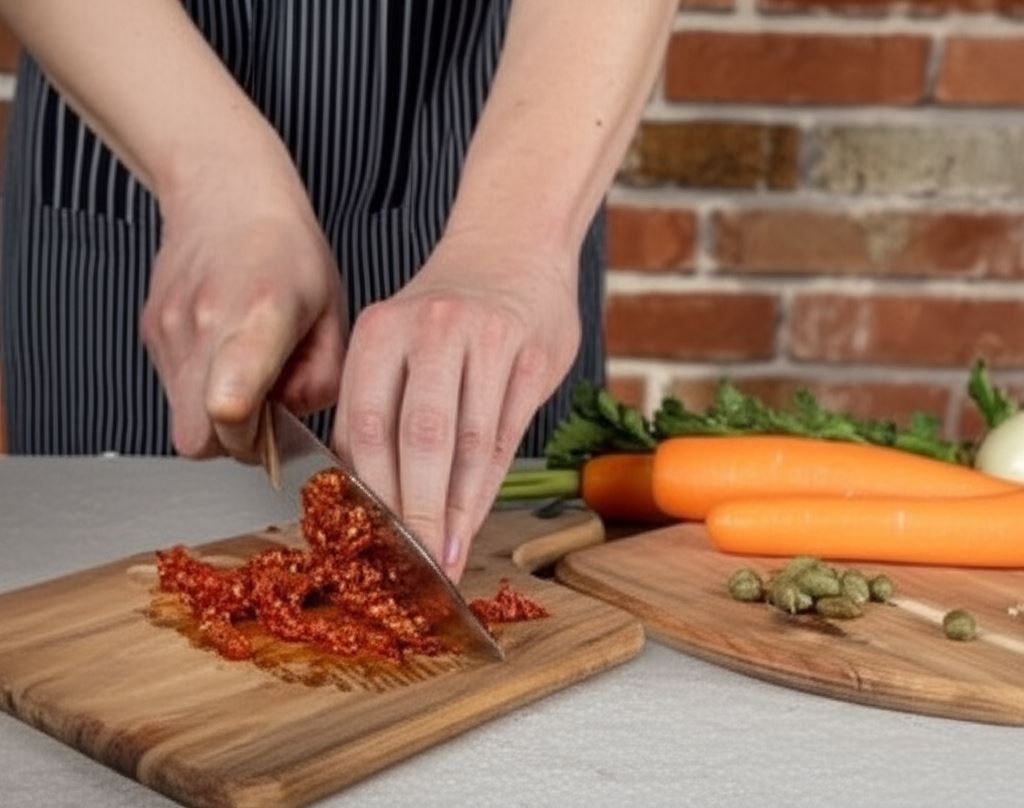 W tym daniu na pierwszy plan wysuwają się suszone pomidory, kapary i natka pietruszki, nadając potrawie śródziemnomorski charakter. Cebula i czosnek budują głębię smaku, a całość wieńczą prażone orzeszki pinii i świeżo starty parmezan. Przygotowanie zajmuje zaledwie 35 minut, co czyni to danie idealnym wyborem na szybki, ale pełnowartościowy posiłek.