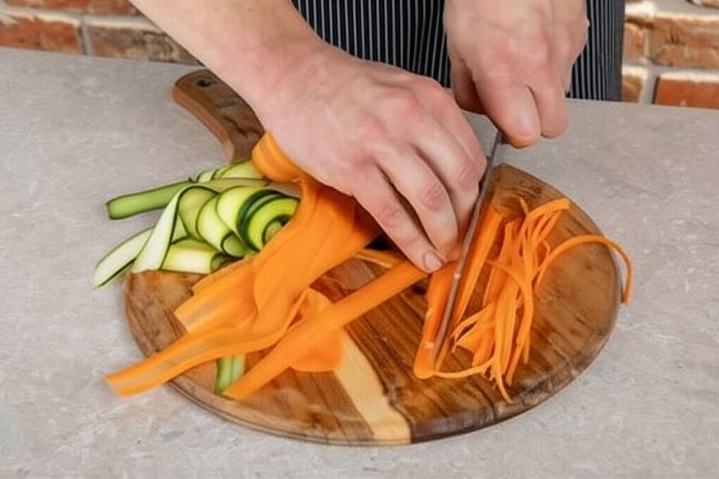 Do przygotowania warzywnego spaghetti warto zaopatrzyć się w odpowiednie narzędzia kuchenne. Krajalnica spiralna, twister lub spiralizer do warzyw znacznie ułatwią krojenie twardych warzyw w cienkie, długie paski przypominające makaron.