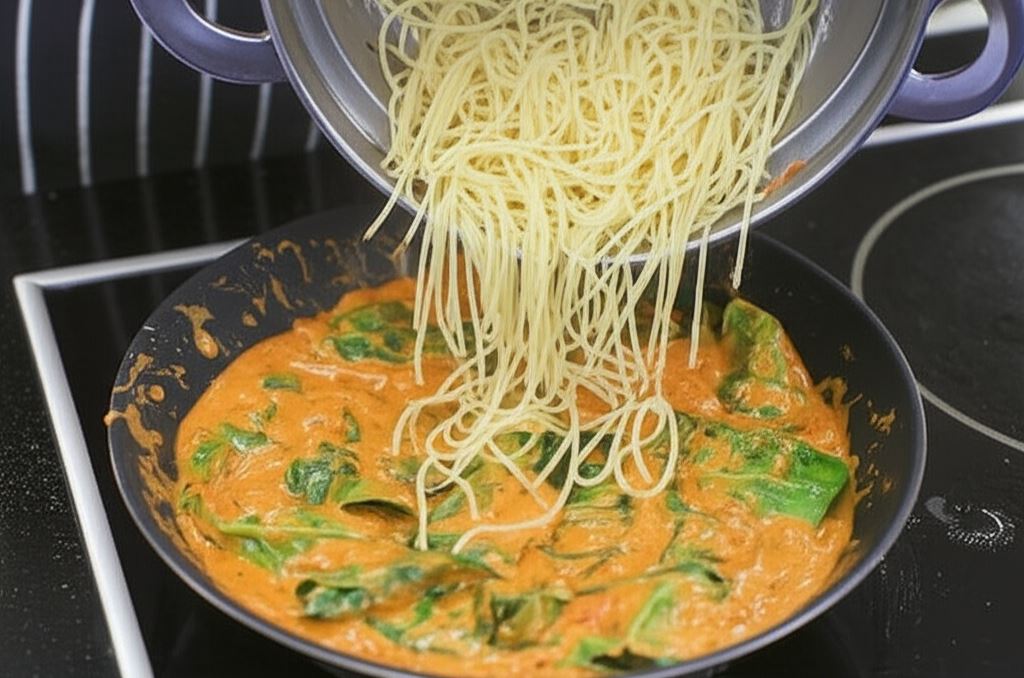 Spaghetti z pomidorami i szpinakiem – włoska uczta w 15 minut