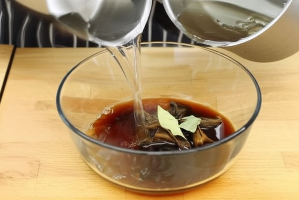 Zalej suszone grzyby z listkiem laurowym i zielem angielskim 750 ml wrzątku, nakryj i pozostaw na 10 minut, po czym ostudź. Jeżeli nie posiadasz borowików, możesz zastosować inne szlachetne grzyby z lasu.