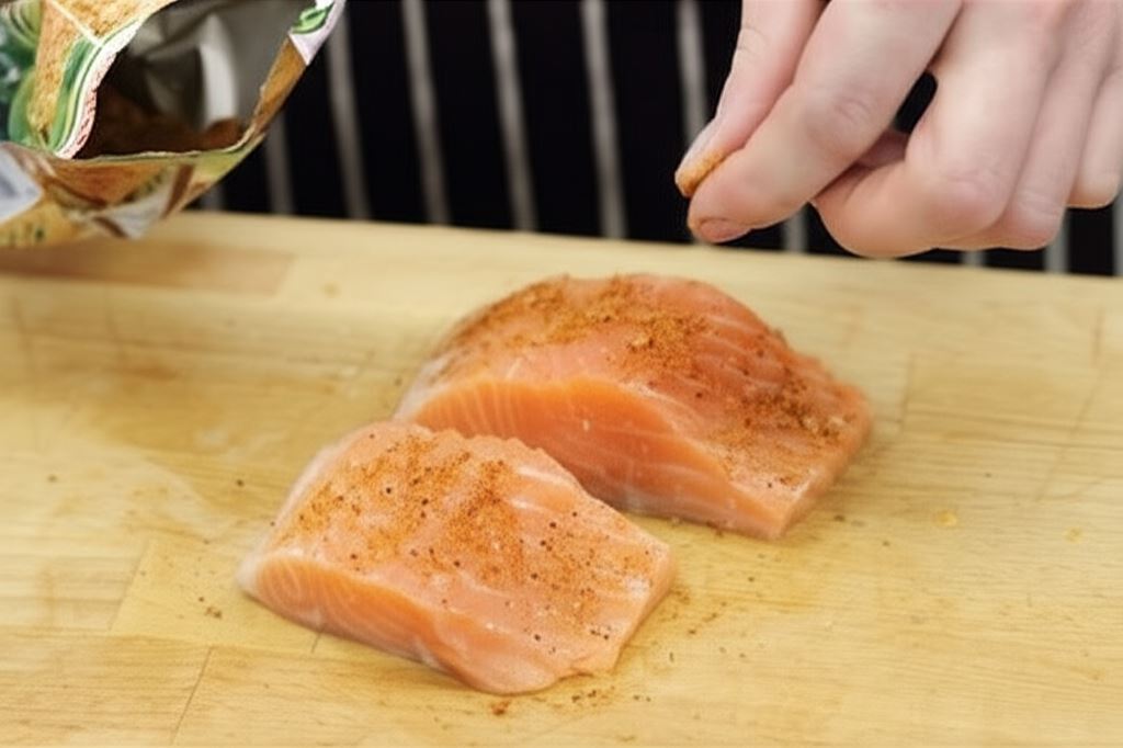 Podziel filet łososiowy na cztery porcje i przypraw przyprawą Knorr.