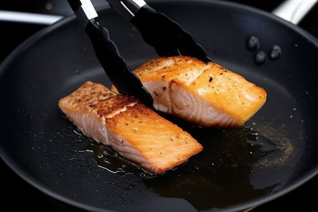 Kluczem do idealnie usmażonego łososia jest odpowiednia temperatura patelni. Zbyt gorąca sprawi, że ryba przypali się z zewnątrz, pozostając surowa w środku. Umiarkowane nagrzanie patelni pozwoli uzyskać idealną teksturę – chrupiącą skórkę i soczyste wnętrze.