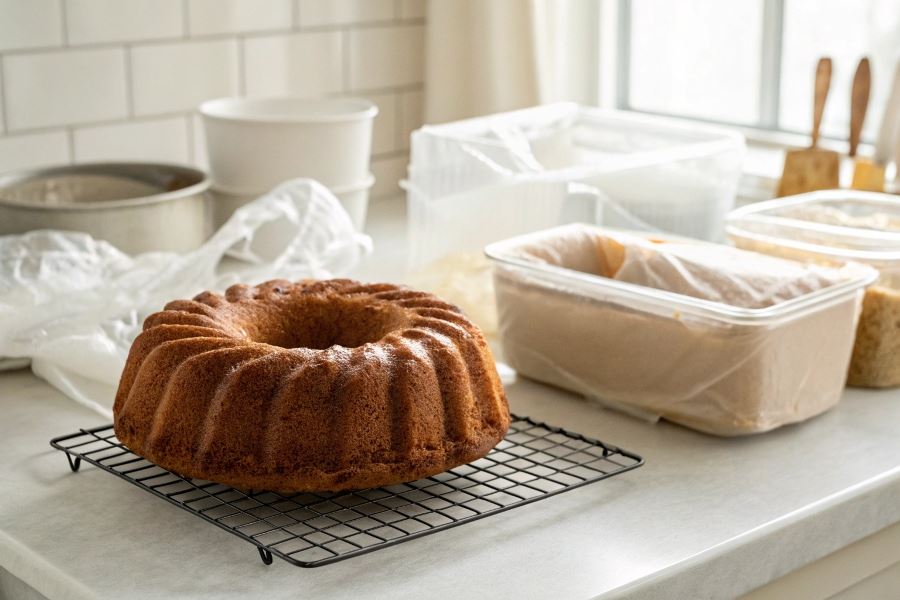 Mrożenie to doskonała metoda na przedłużenie trwałości babki nawet do 3 miesięcy. Przed zamrożeniem babkę należy pokroić na porcje, każdą zawinąć szczelnie w folię spożywczą, a następnie w folię aluminiową lub umieścić w woreczku do mrożenia. Taki sposób zapobiega powstawaniu kryształków lodu i chroni przed zapachami z zamrażarki.