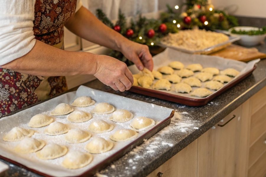 Przygotowanie uszek i pierogów do podania w Wigilię