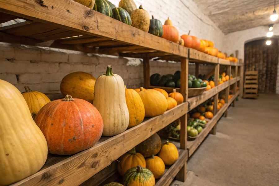 2. Dojrzewanie po zbiorze – po zebraniu dynie powinny „dojrzeć” przez 10-14 dni w ciepłym (20-25°C), suchym i dobrze wentylowanym miejscu. Ten proces wzmacnia skórkę i poprawia smak.