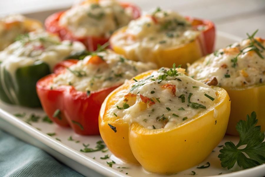 Przygotowanie i serwowanie faszerowanych papryk z serem i czosnkiem