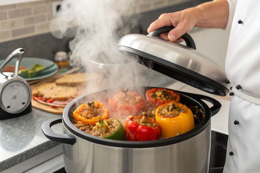 Gotowanie pod ciśnieniem w szybkowarze zapewnia papryce faszerowanej wyjątkowe walory kulinarne: