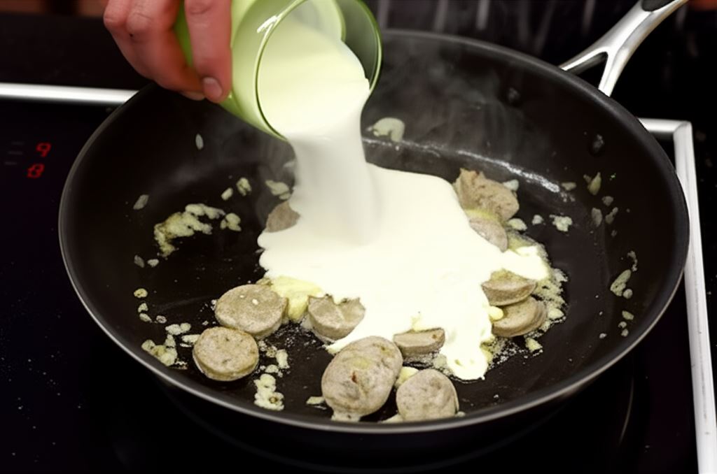 Gdy wszystko się zrumieni, dodaj śmietanę.