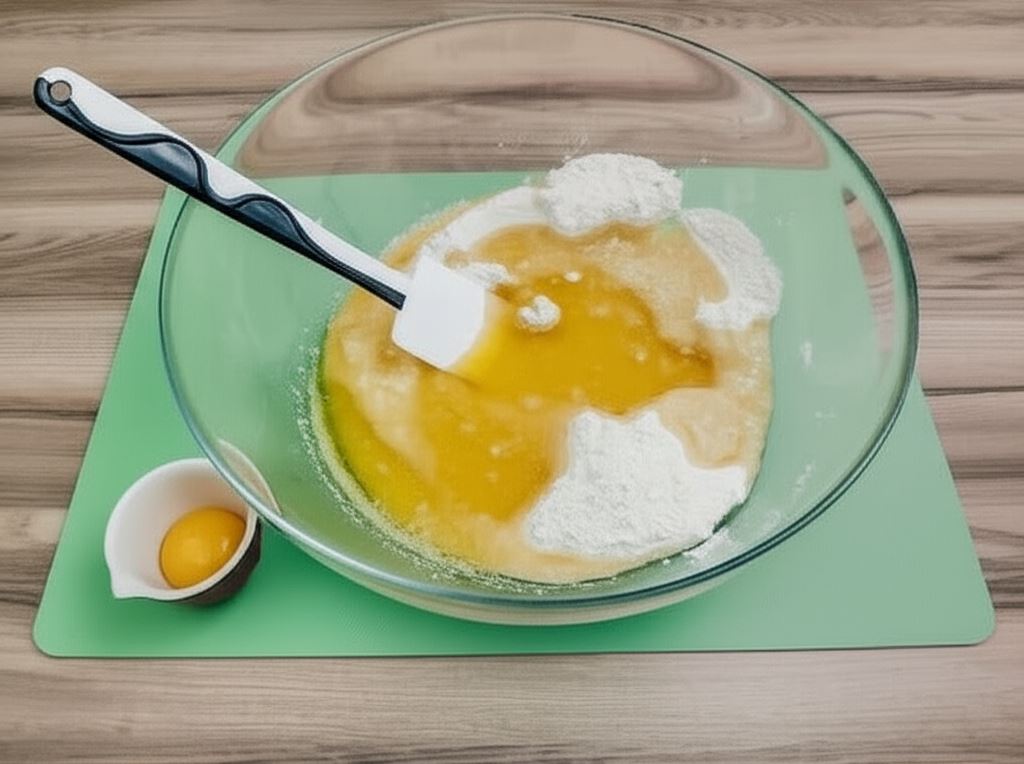 Formę tortową wyłożyć papierem do pieczenia (zagiąć papier również na boki). W miseczce połączyć mąkę, cukier i sól. W rondelku stopić masło i wlać je do składników w misce. Mieszać aż powstanie jednolita masa. Dołożyć żółtko. Szybko wyrobić.