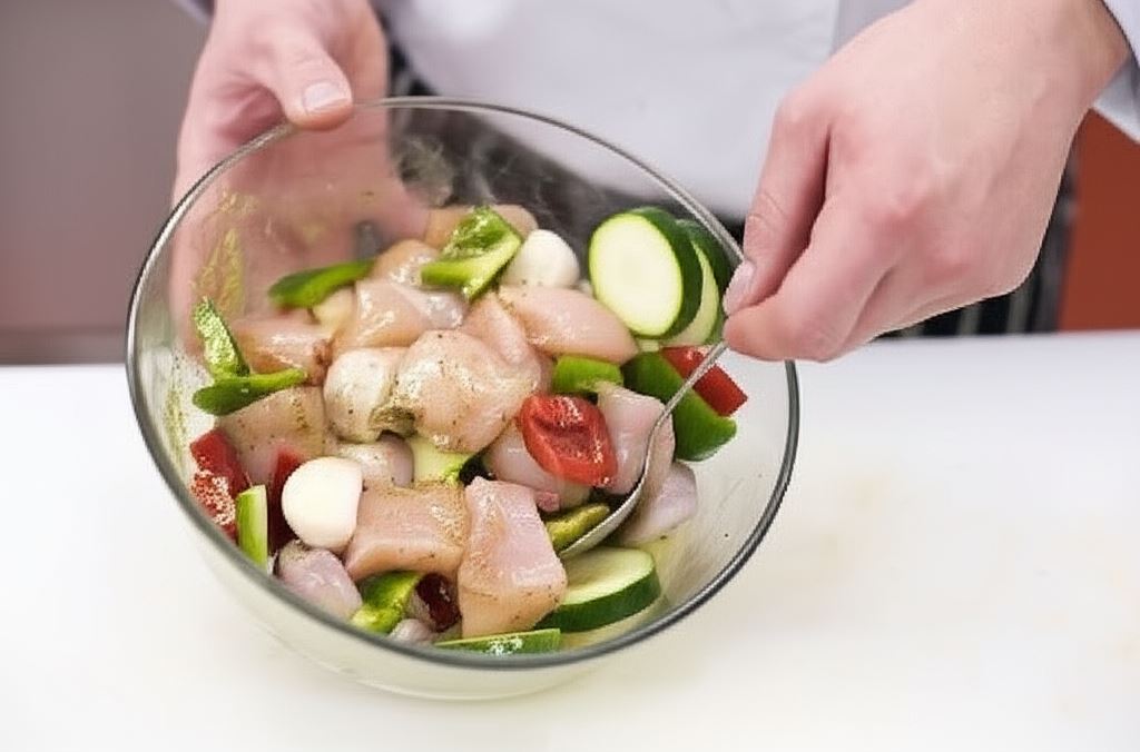 Szaszłyk z marynowanych warzyw z kurczakiem