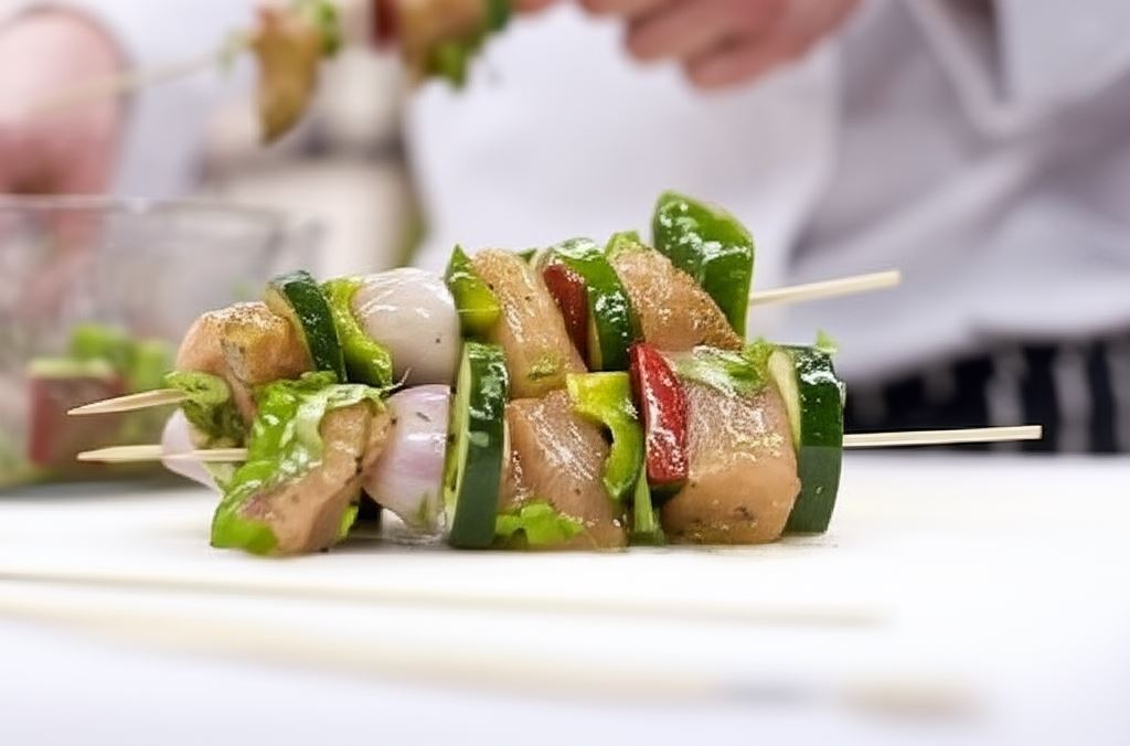 Soczyste kawałki kurczaka przeplatane kolorowymi warzywami, skąpane w aromatycznej marynacie – to przepis na idealny szaszłyk! Sekret tkwi w odpowiednim przygotowaniu składników i marynacie, która nada głębi smaku każdemu kęsowi. Delikatne mięso z kurczaka w połączeniu z chrupiącą papryką, cukinią i szalotką tworzy harmonijną kompozycję smaków i tekstur.