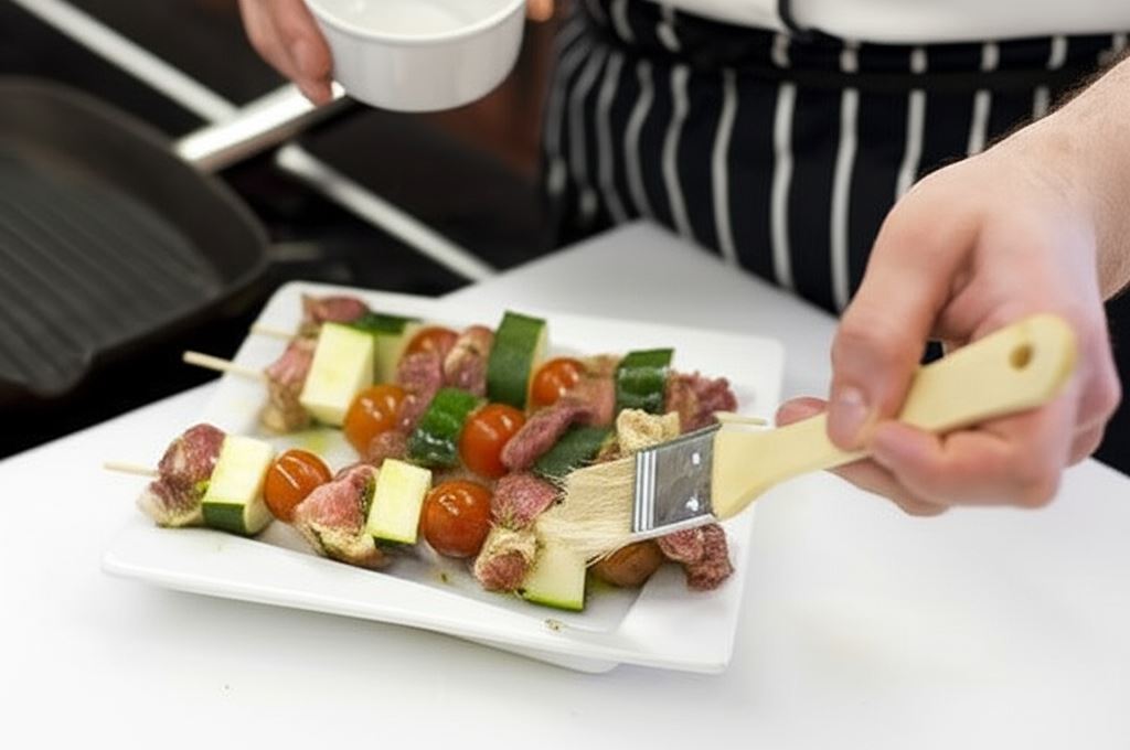 Zanim umieścisz na grillu przygotowane szaszłyki pokryj je cienką warstwą oleju.
