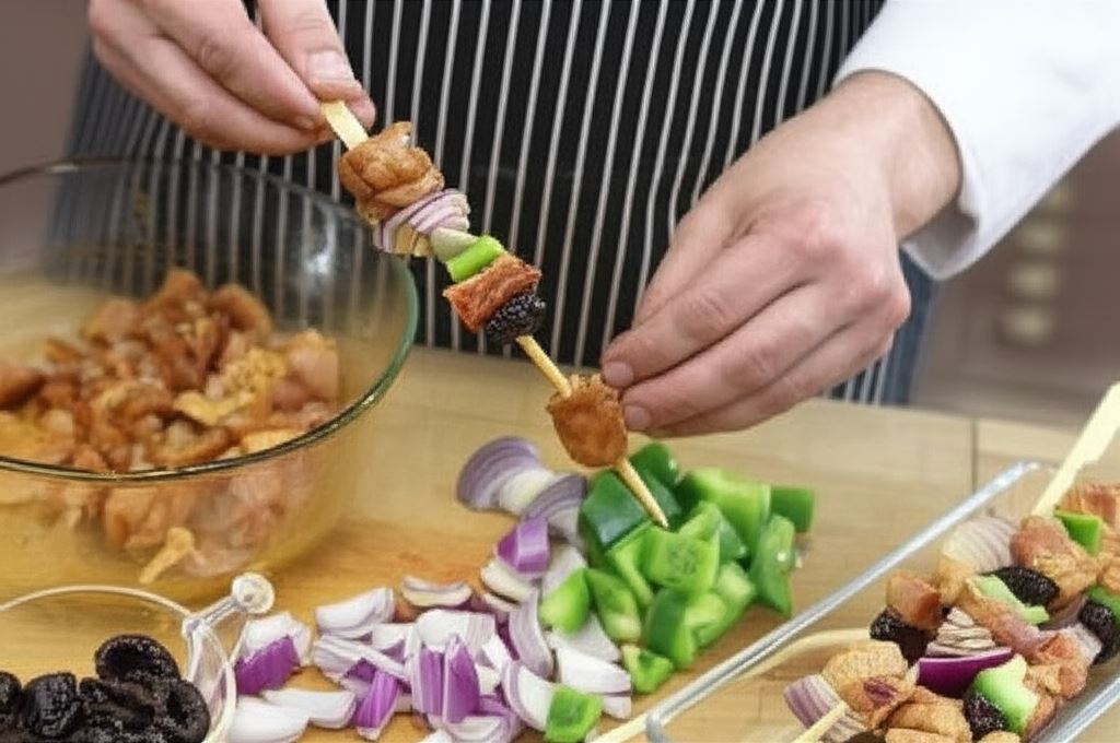 Boczek w szaszłykach pełni podwójną rolę – nie tylko dodaje smaku, ale również zapobiega wysuszeniu kurczaka podczas grillowania. Suszone śliwki namoczone w brandy wprowadzają nutę słodyczy, która idealnie równoważy słony smak wędzonki. To właśnie ten kontrast smaków sprawia, że danie jest tak wyjątkowe.