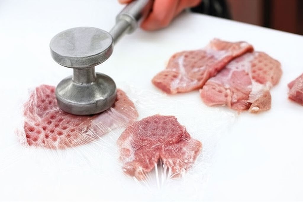 Z udźca wykrój mniejsze porcje, po 6-8 dekagramów każda i roztłucz delikatnie tłuczkiem.