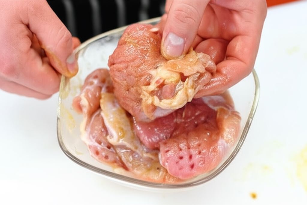 Potem natrzyj mięso pastą z kostki Knorr i odstaw na 30 minut.