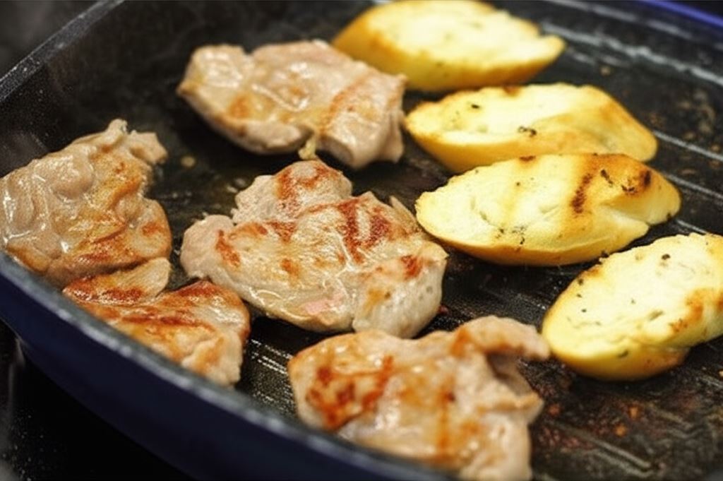 Grilluj sznycle i chleb przez kilka minut z każdej strony. Mięso musi być soczyste, a chleb intensywnie rumiany i chrupiący.