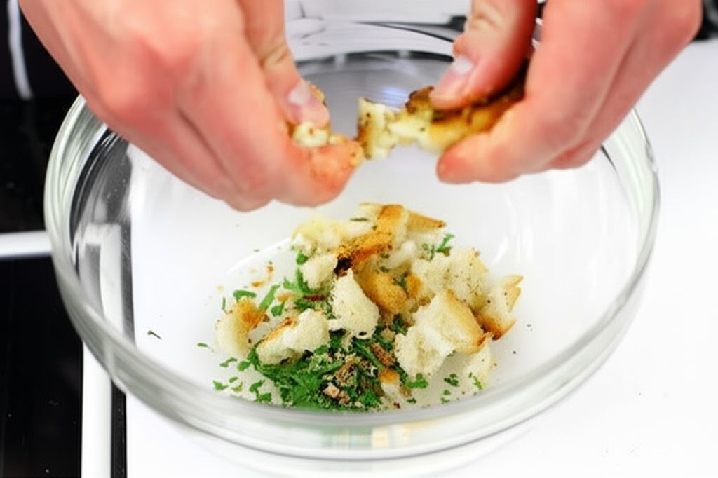Po grillowaniu przenieś mięso na talerz. Chleb rozdrobnij palcami na małe kawałki i połącz go z posiekaną natką pietruszki. Sznycle serwuj oprószone chrupiącą chlebową kruszonką.